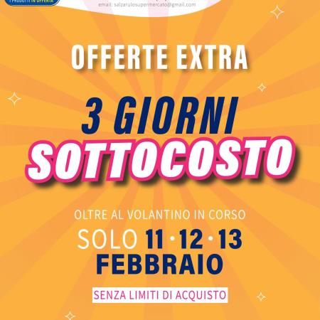SUPERMERCATO SALZARULO – Dove tutto costa meno – 3 GIORNI DI SOTTOCOSTO – OLTRE AL VOLANTINO IN CORSO – SOLO 11- 12- 13 FEBBRAIO 2026