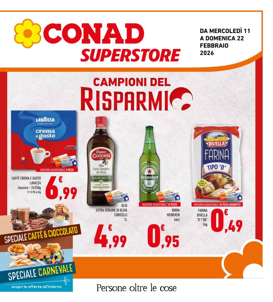 8 giugno 20209 febbraio 2026 diconzagiovanni Conad Superstore Lioni offerte volantino valide da MERCOLEDI’ 11 a DOMENICA 22 FEBBRAIO 2026. 40.874767 15.188814 83047 Lioni AV, Italia Condividi:TweetAltro Condividi su WhatsApp (Si apre in una nuova finestra) WhatsApp Mi piace Caricamento... Correlati