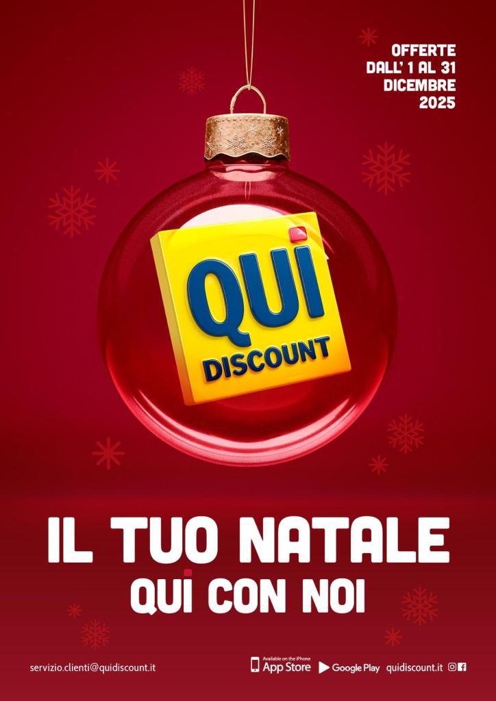 4 dicembre 2025 diconzagiovanni QUI DISCOUNT – IL TUO NATALE QUI CON NOI – DAL 1 AL 31 DICEMBRE 2025. Condividi:TweetAltro Fai clic per condividere su WhatsApp (Si apre in una nuova finestra) WhatsApp Mi piace Caricamento... Correlati
